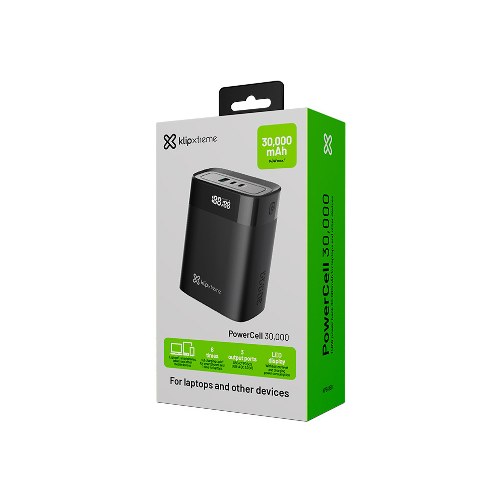 power bank klip xtreme powercell 30,000 kpb 850 (30.000 mah, 140w pd)Power Bank Klip Xtreme PowerCell 30,000 KPB-850 (30.000 mAh, 140W PD)